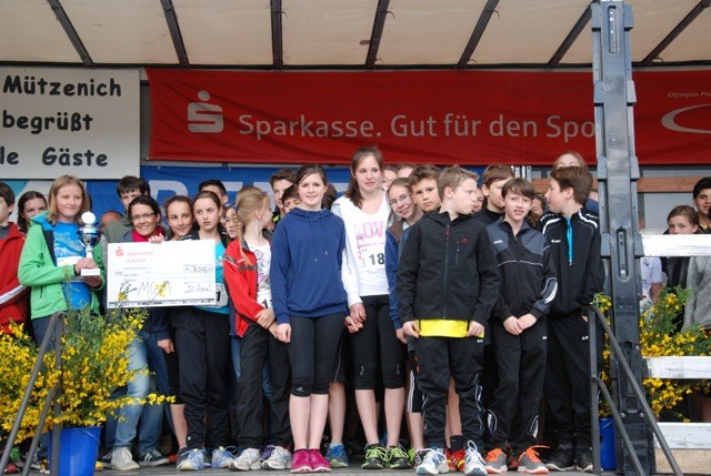 Ein Dank geht zum einen an die Sponsoren, denn Frau Waasem durfte für den Förderverein unserer Schule ein Preisgeld von 800 € in Empfang nehmen, und zum anderen an die LG Mützenich und Wolfgang Poqué, die mal wieder für einen reibungslosen Ablauf der Veranstaltung gesorgt haben!
